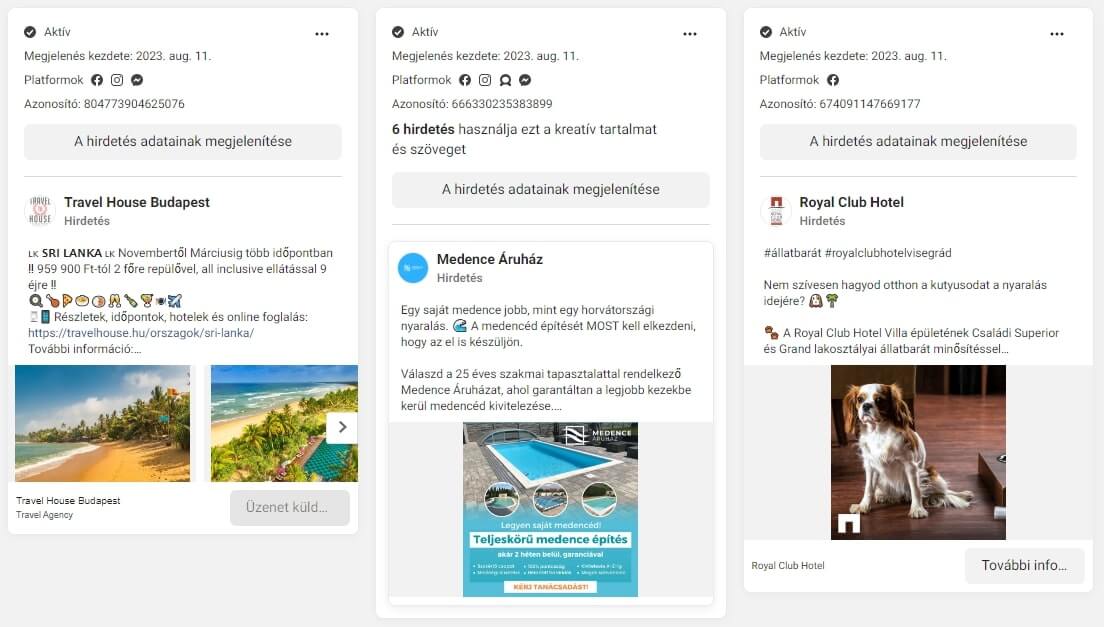 Az alábbi adatok tudhatjuk meg a Meta Hirdetéstár segítségével: