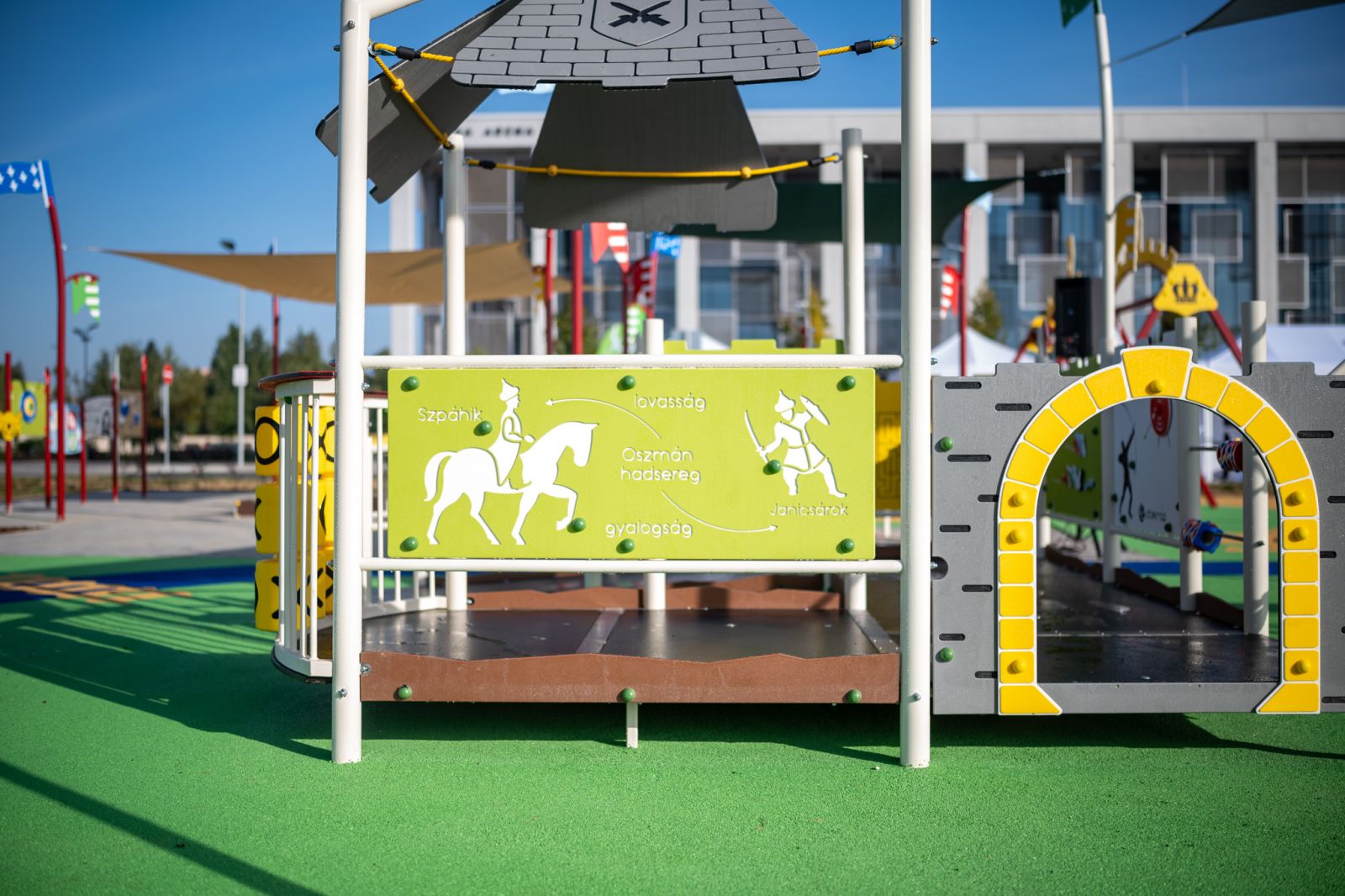 A város történelméhez szorosan kötődő, „vár” tematikáját választották a most átadott befogadó játszótér tervezői. A közösségi térként is funkcionáló, immáron 25. játszótéren kilenc játékelemen kívül okospad és kerékpártároló is várja a helyszínre érkezőket. A témakör és az eszközök kiválasztásakor azon túl, hogy a fogyatékossággal élő és ép gyermekek együtt tudjanak játszani, szempont volt az is, hogy minél szélesebb korosztály számára használható elemek kerüljenek telepítésre. Hazánkban ugyanis a 14 év alatti gyermekek közül minden tizenötödik érintetett a fogyatékosság valamely típusával.