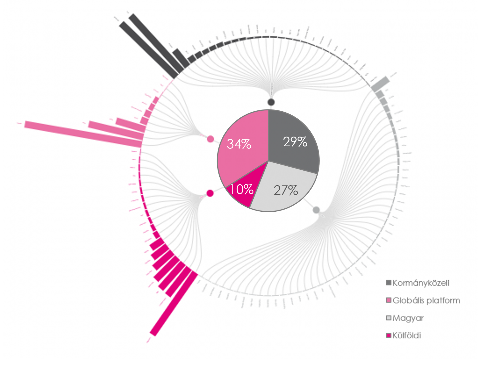 - Minden média- és platformtípusban pár nagy szereplő dominál, médiatípusonként eltérő mértékben, de jelentős a koncentráció.